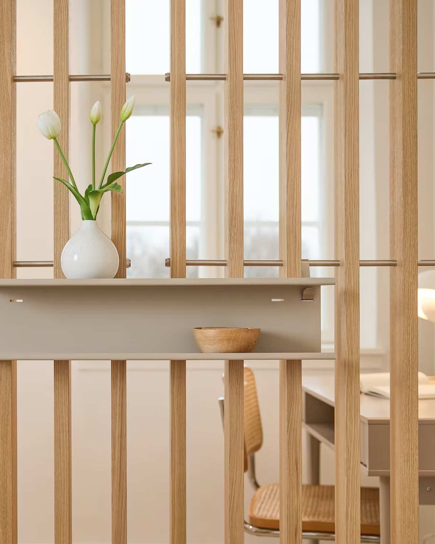 Embrace is made up of two core modules that can be combined and adjusted, with accessories added to suit different spaces and needs.