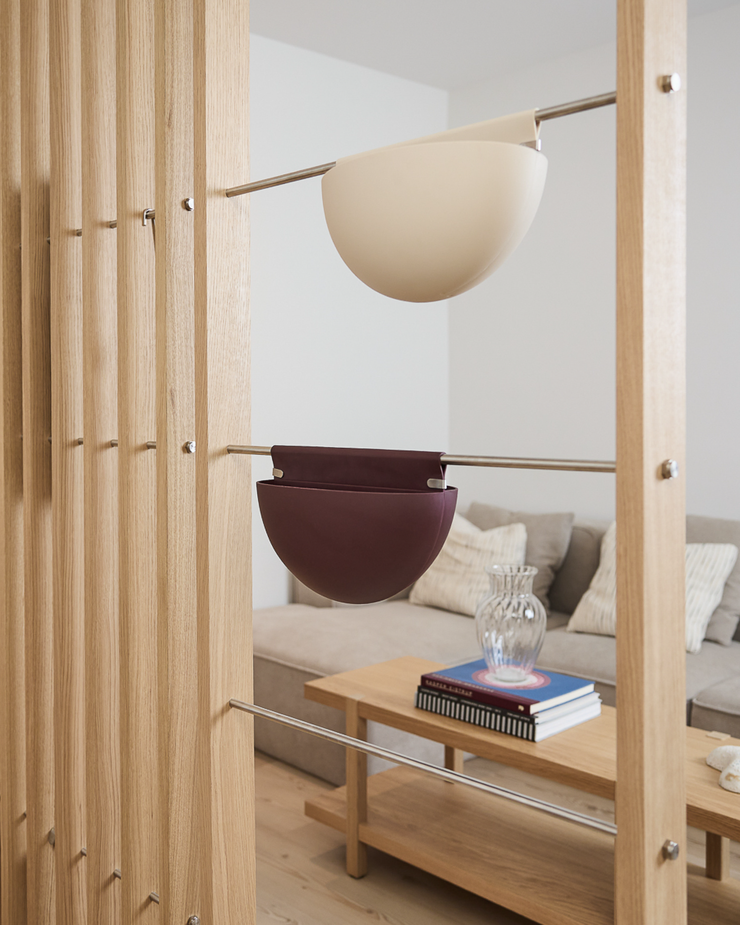 Crafted from oak veneer and stainless steel, it’s made up of modular elements you can arrange, rework and adjust over time as your space evolves.