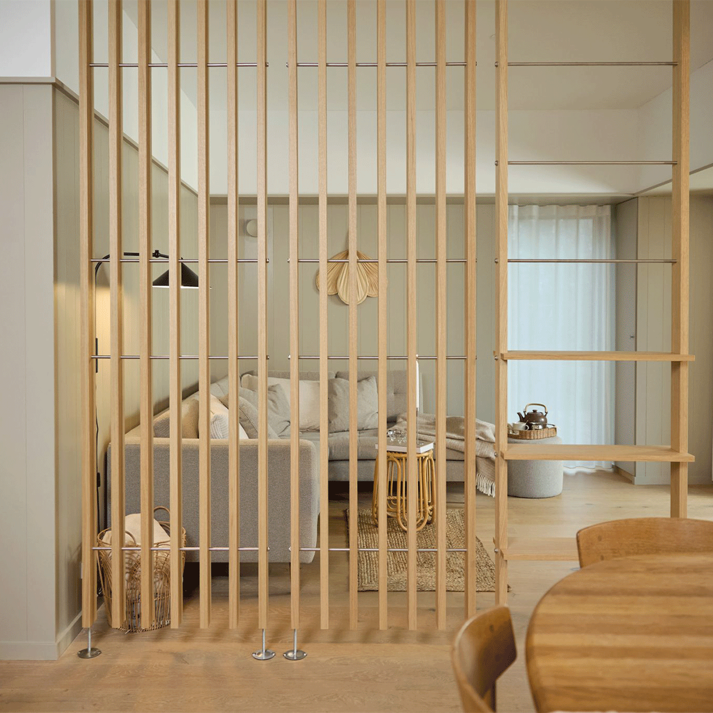 Embrace is a floor-to-ceiling room divider system that lets you divide open spaces without building walls or blocking light. It installs between floor and ceiling to create clear zones in your space.